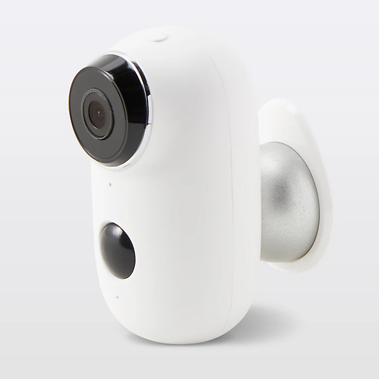 Cette caméra extérieure de résolution 720p est sans fil avec une batterie intégrée et une connexion Wi-Fi. Inclut une fixation murale magnétique pour une installation facile où vous voulez.